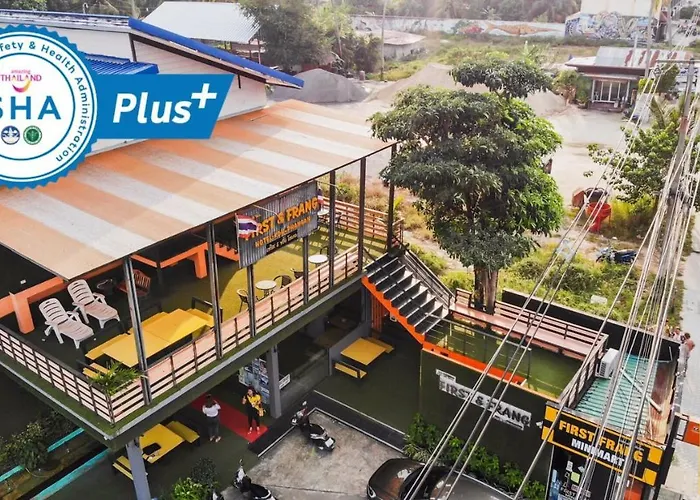 Met waterglijbanen, de recreatieve voorzieningen en BBQ-voorzieningen ligt het comfortabele First And Frang Hotel - Koh Phangan Thong Sala in het zakendistrict van Thong Sala, op 13 minuten loopafstand van het Ang Thong National Marine Park en op 3 km van het Strand van Wok Tum. Dit mooie 2-sterrenhotel beschikt over Wi-Fi is beschikbaar in de hele accommodatie.